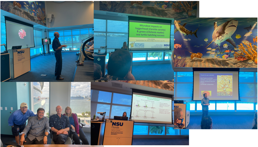 Our Halmos College of Art and Sciences held an excellent fourth biennial graduate research symposium on Feb 24 – 25, 2022. Many students gave great talks, including our own Colleen McMaken and postdoctoral scientist Lauren Krausfeldt. Colleen garnered second prize among outstanding >20 student talks. This also allowed HCAS to hear Drs. Lauren Toth, and John Reed give riveting keynote talks, and we could also hold a mini-reunion of HBOI alumni (Tracey Sutton, Tammy Frank, Joe Lopez and John Reed) at NSU. Past graduate symposia can be viewed here and the respective keynotes (which unfortunately were not recorded): 2016 (Kate Mansfield), 2018 (Ruth Gates), 2020 (Nancy Knowlton and Jeremy Jackson).