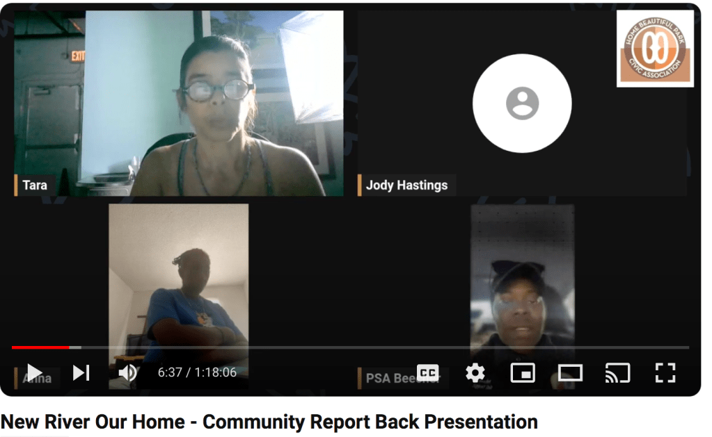 The New River team attended the Sistrunk Civic Association meeting and was welcomed with enthusiasm and engagement from residents and local commissioners. Tara Chadwick led the discussion which can be found here –